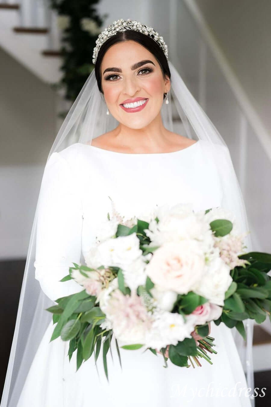 Make a statement with our A Line Satin Wedding Dress. With long sleeves and a jewel neckline, this gown exudes elegance. The train adds a touch of drama to your special day. Trust us, you'll feel like a modern-day princess in this dress!