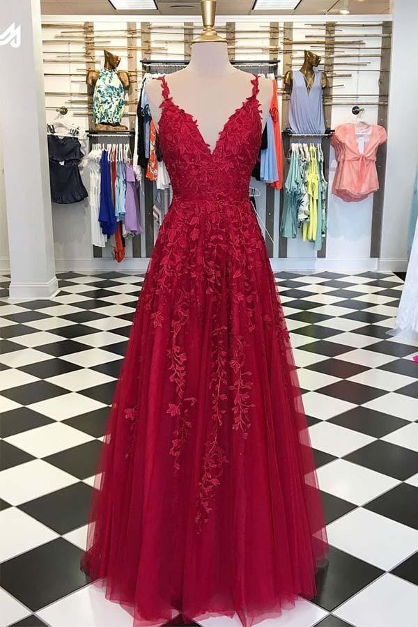 This sky blue lace prom dress features an A-line V neckline and red trim. Perfect for senior prom or other formal occasions, this sophisticated dress is sure to stand out. Crafted with lightweight materials, its elegant design ensures you look and feel your best.