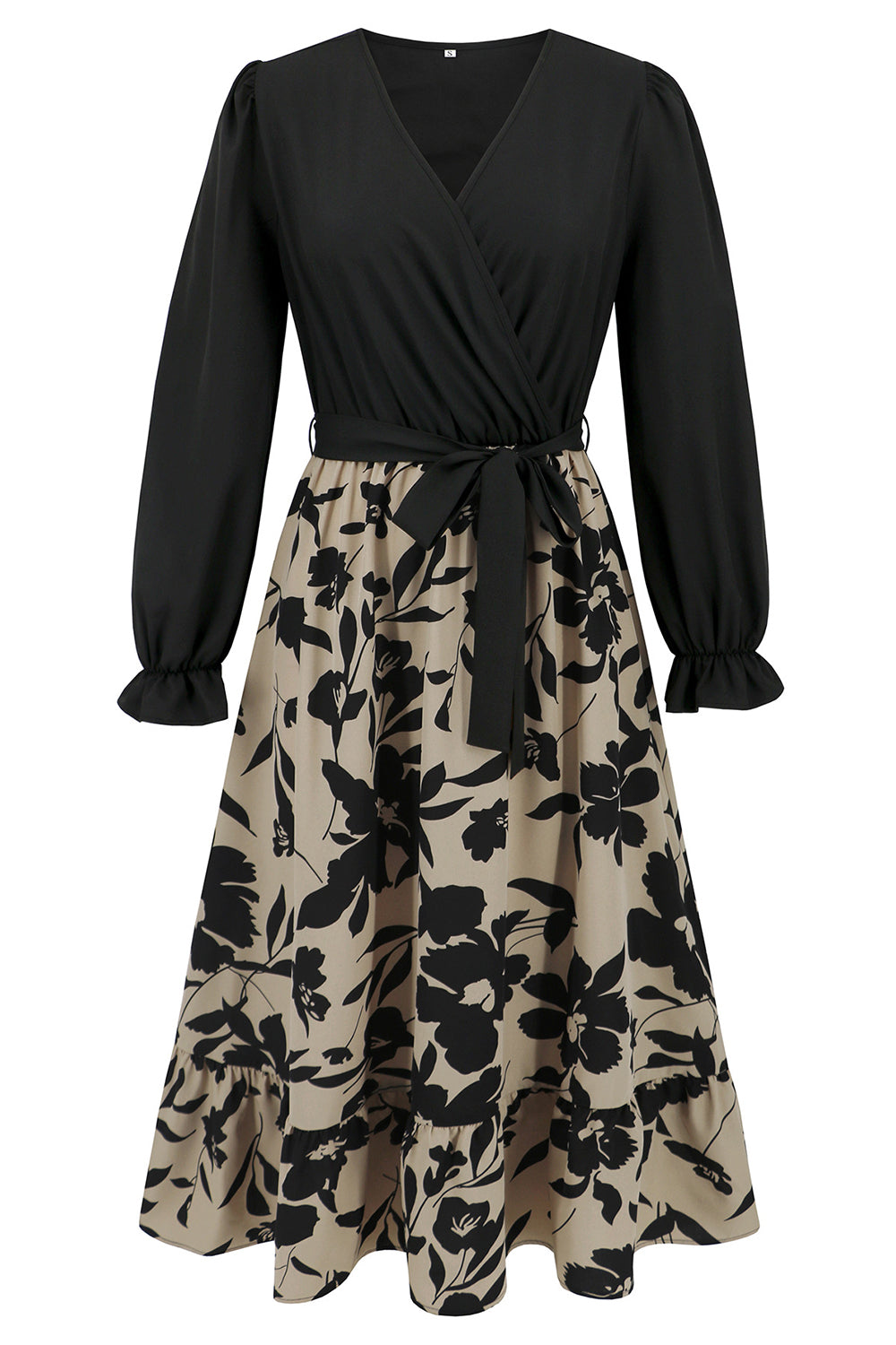 Apricot Flower A Line V Neck Long Sleeves Cocktail Dress