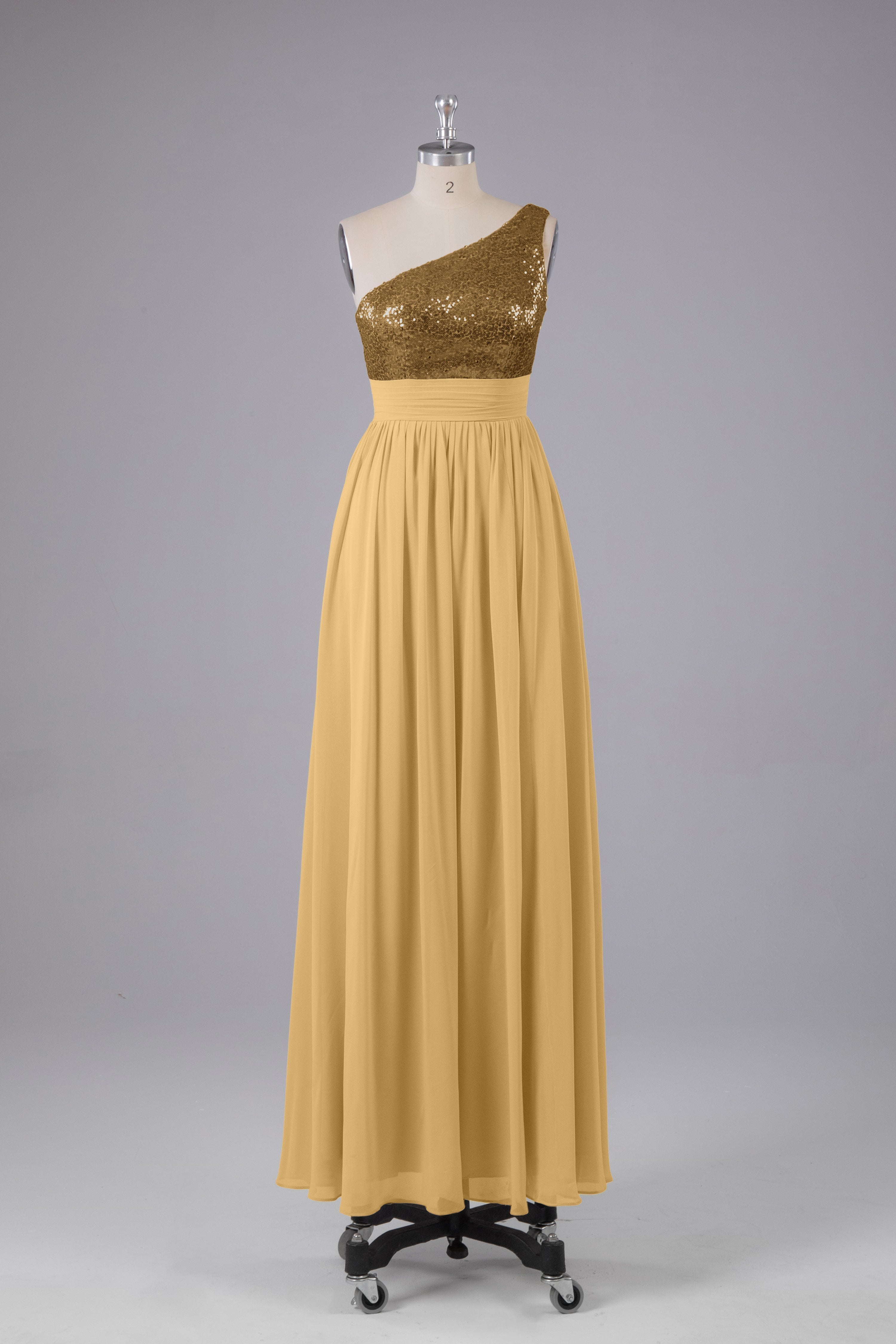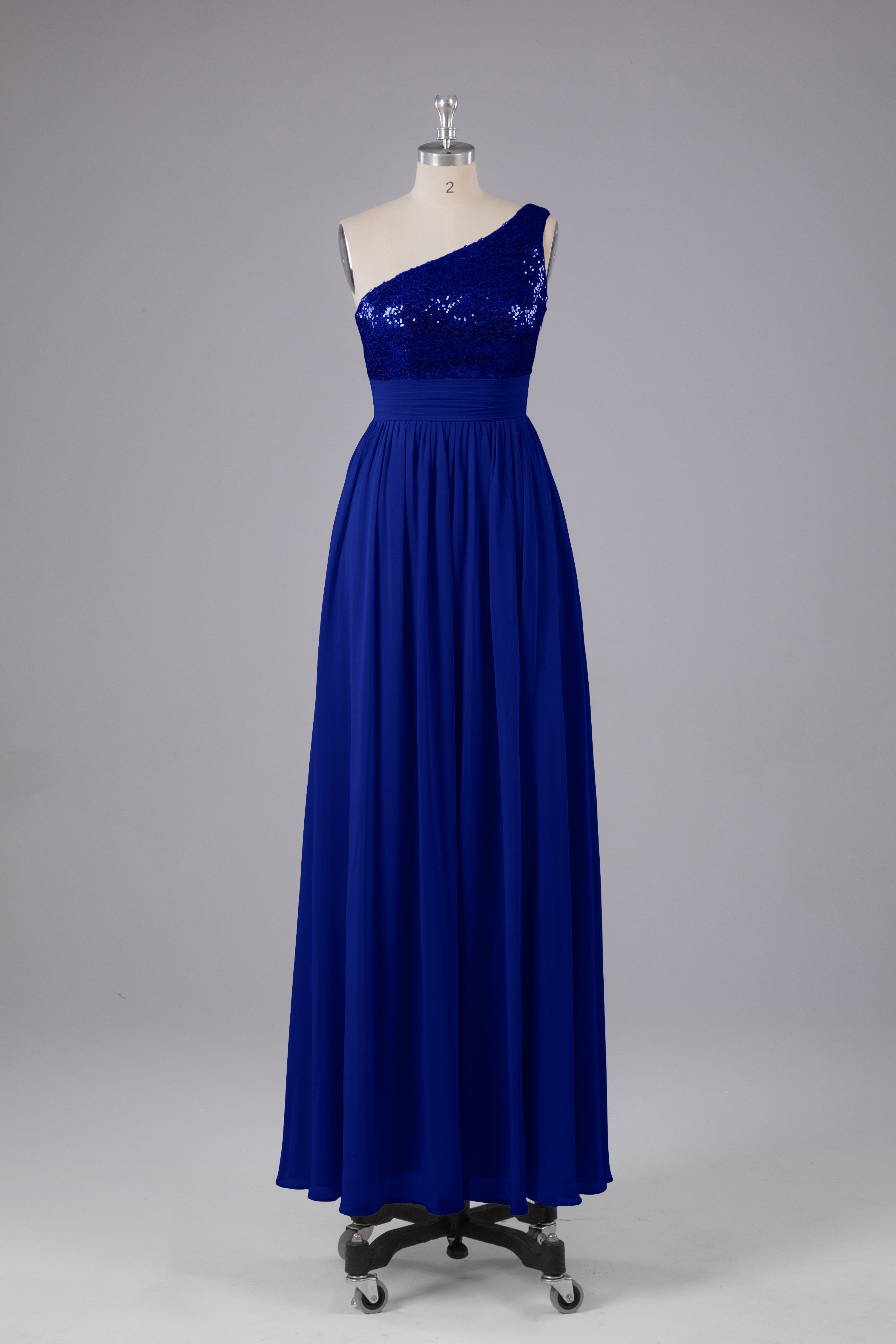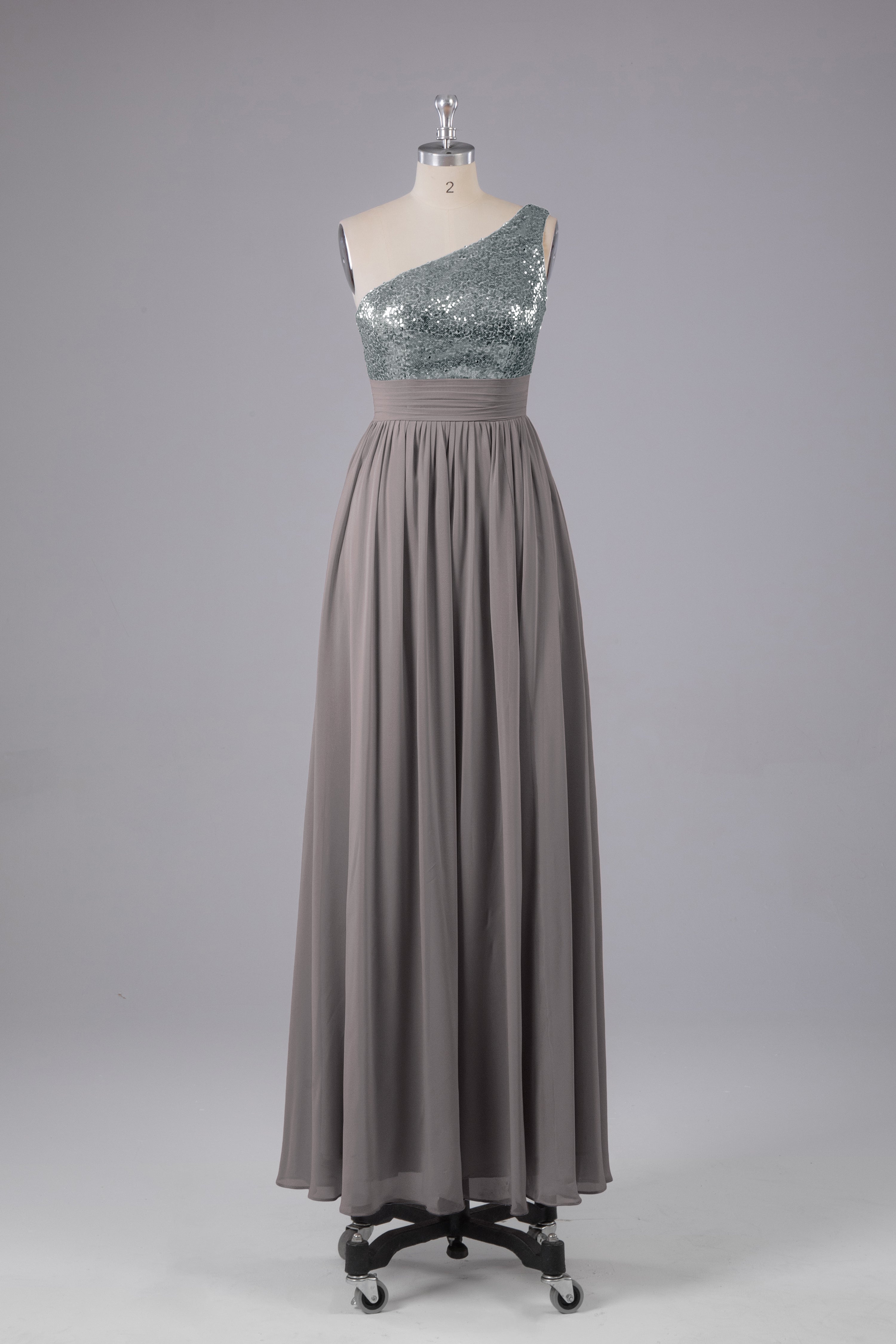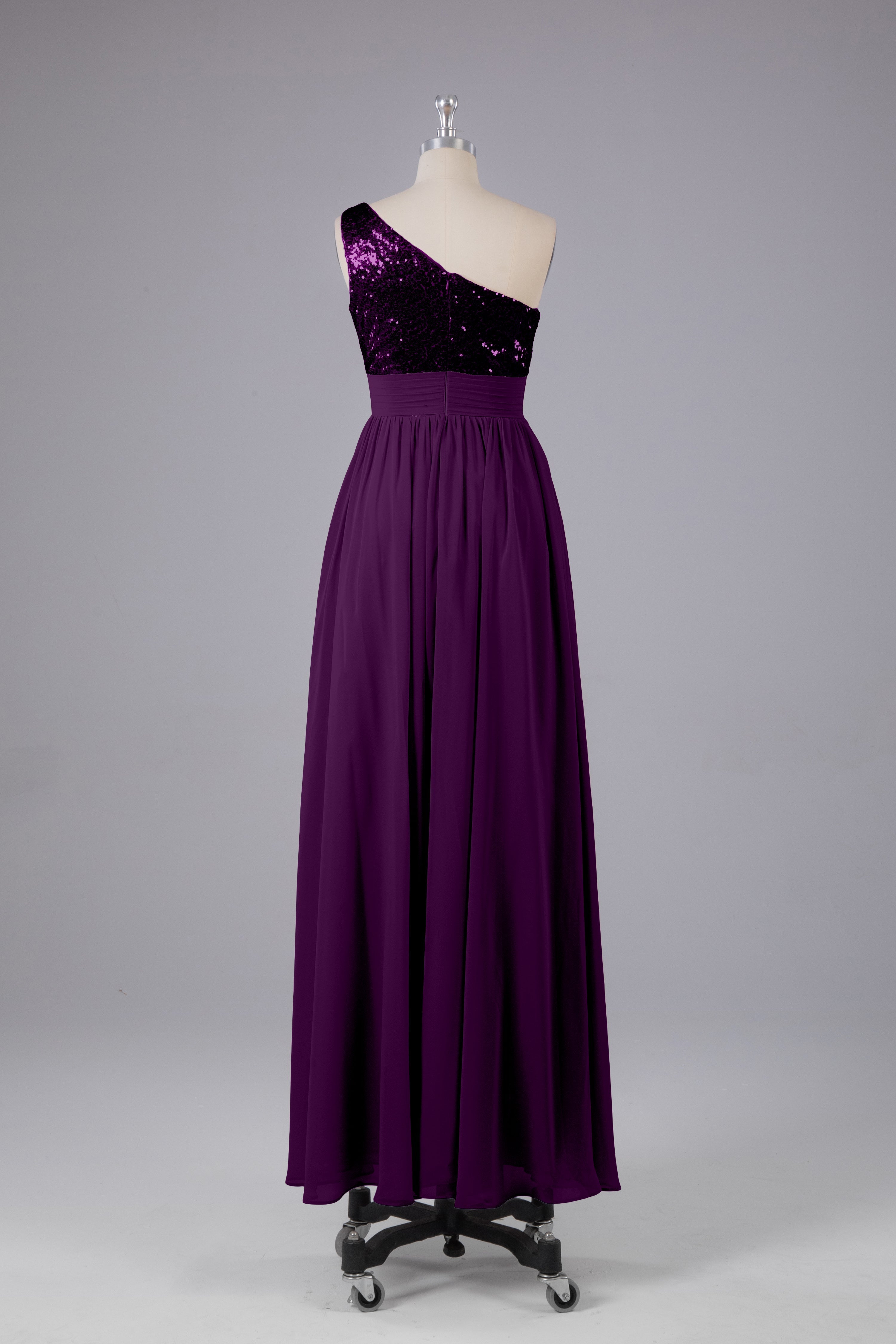 Mooie pailletten one-shoulder bruidsmeisje jurk met zakken