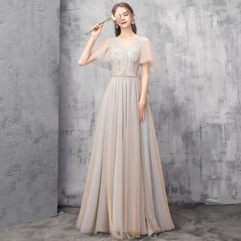 Elegant Off Shoulder Floor Length Tulle Prom Dress Bridesmaid Dresses