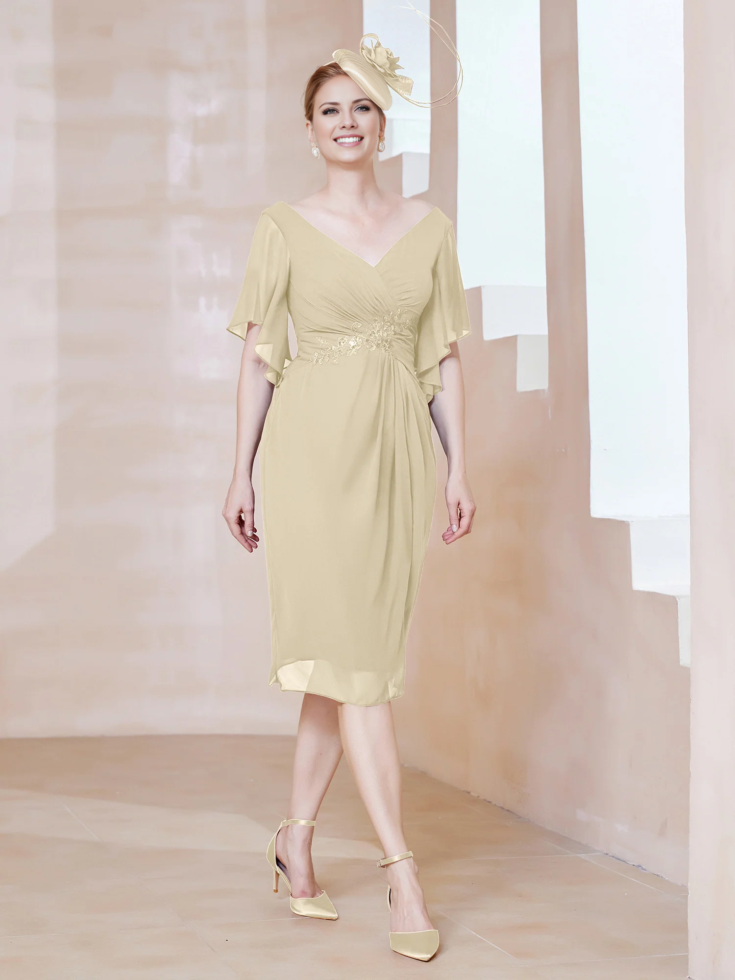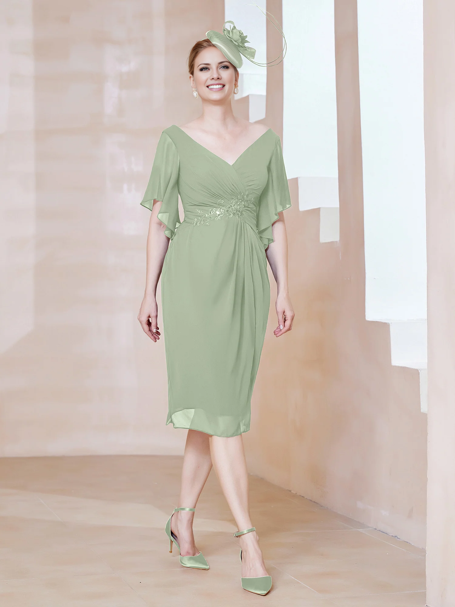 Floating sleeve V-neck sequin decal decoration for mother of the bride dress