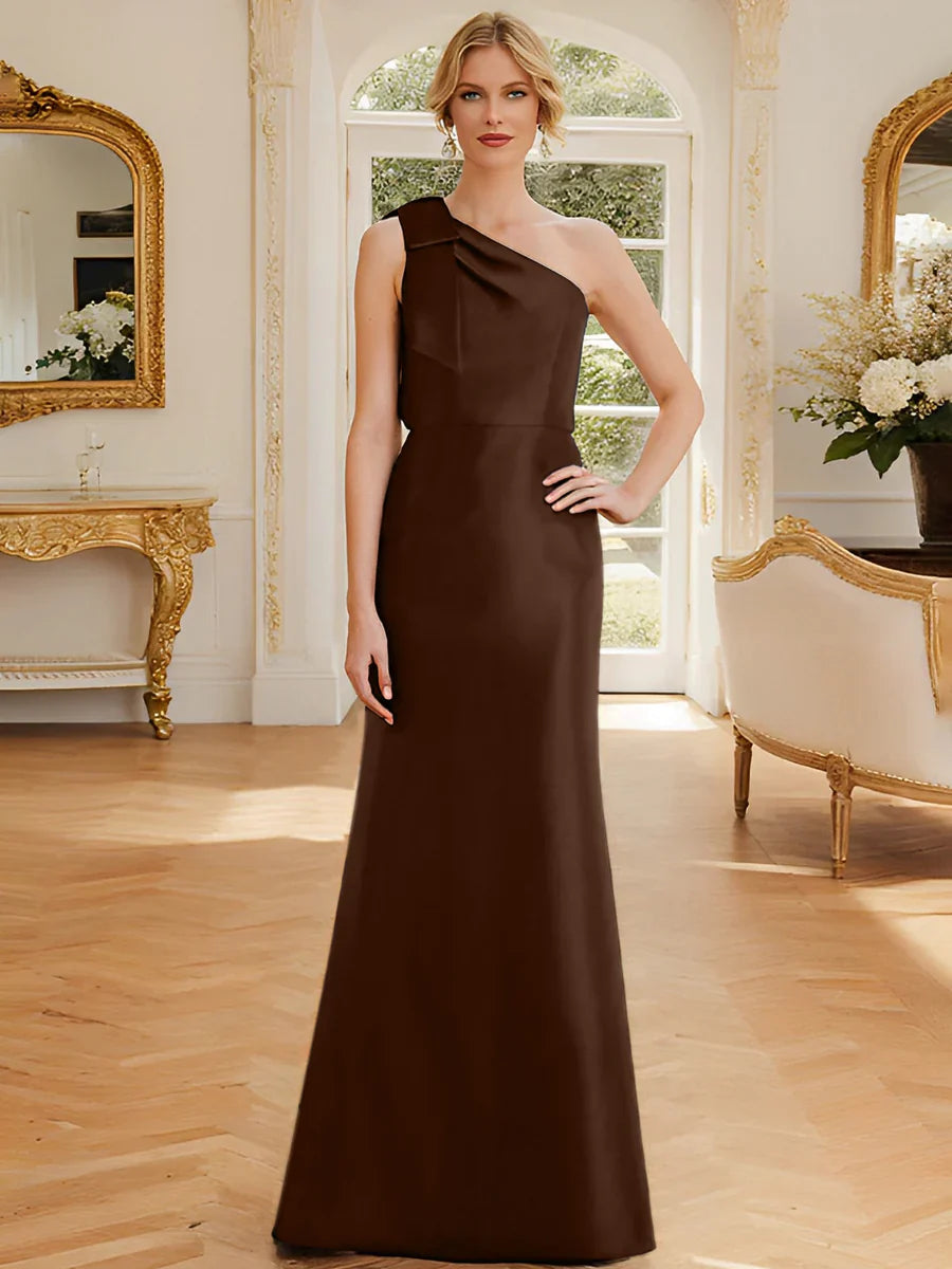 Sheath/Column Sleeveless One-Shoulder Floor-Length Stretch Crepe Bridesmaid Dresses - Show As Picture